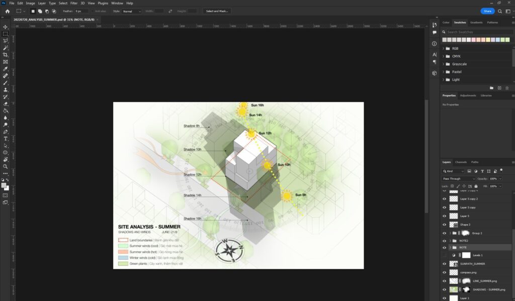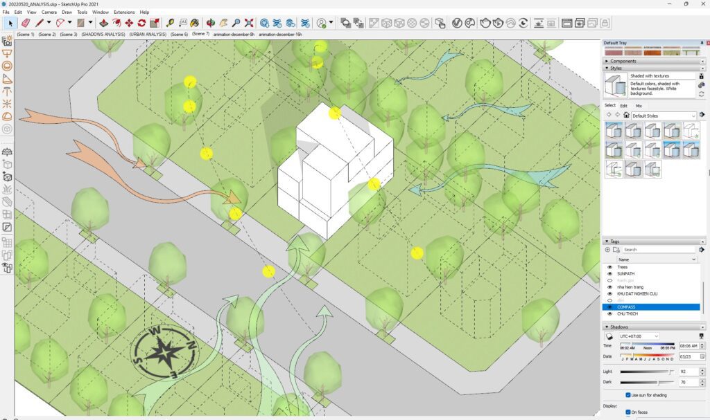 File Sketchup: File này có sẵn la bàn, hướng gió, đường đi Mặt trời theo 2 mùa Đông và Hè tại Việt Nam.